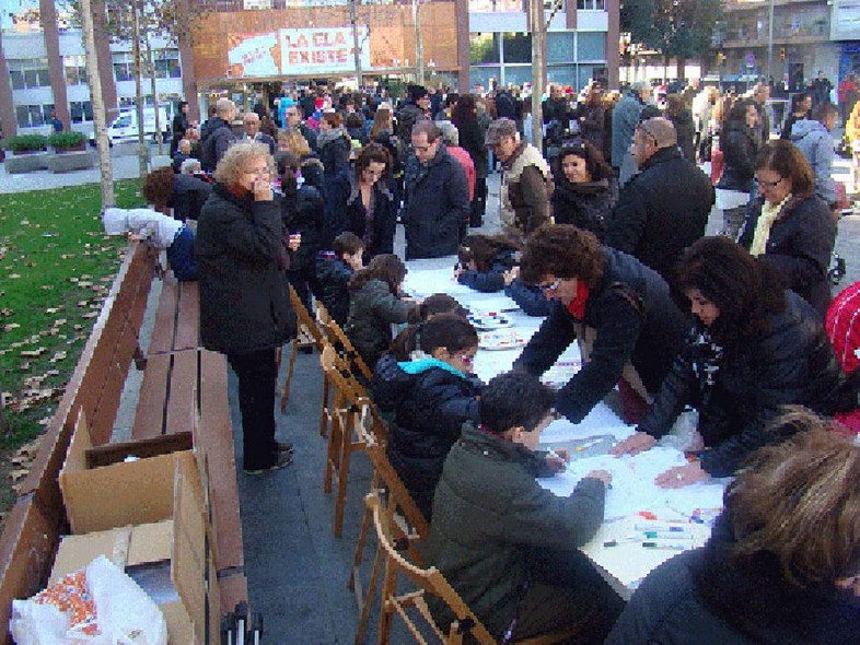 Ahir es van dur a terme a la plaça de la Vila tot una sèrie d'actes per recaptar diners en benefici de La Marató de TV3 que enguany es dedicava a les malalties neurodegeneratives. La Penya Barcelonista Sant Adrià va col·laborar amb la causa amb un taller en que els més petits i petites de la ciutat podien pintar la seva samarreta amb el logotip de La Marató i de la Penya.